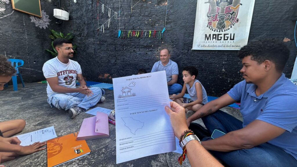 Na tarde do dia 11 de fevereiro de 2026, o Centro de Defesa dos Direitos Humanos Zumbi dos Palmares (CEDECA) promoveu uma oficina com o tema “Cidadania e Direito à Cidade”, no Teatro Escola Maggu, localizado no bairro Benedito Bentes. A ação reuniu crianças, pais, educadores e artistas da escola e da comunidade, fortalecendo o diálogo comunitário e intergeracional.